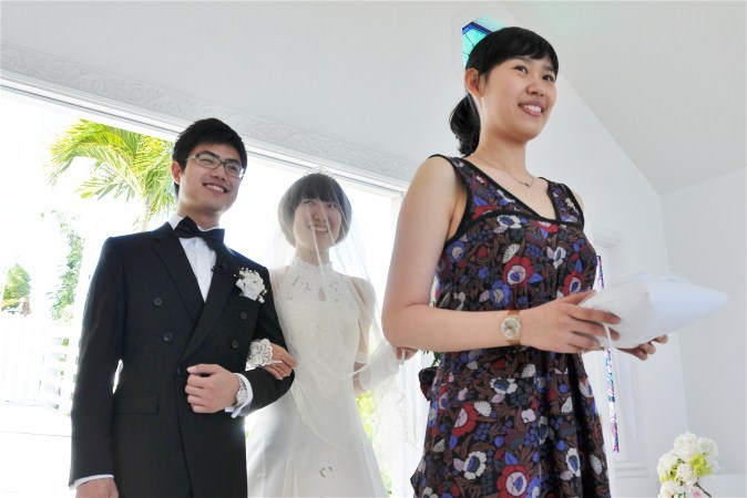 Rev. Kermit performs the wedding at Princess Lagoon Chapel.